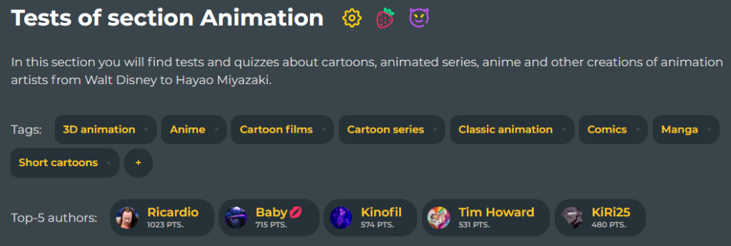 Now, on the page of each section and tag, the top 5 authors are displayed according to the total points accumulated on the tests. These points are calculated using a complex formula that takes into account the number of passes and the rating on the tests. The tops are updated once a day, and the authors included in these lists are notified of changes in their positions.