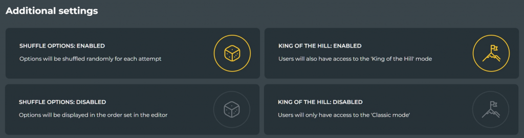 I have been asked quite often if it's possible to disable random shuffling of options during a tournament, as there’s an idea for clearly defined pairs.